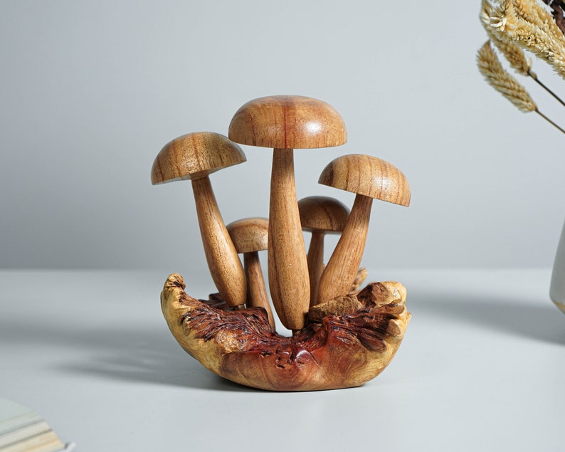 Mushroom is made from local wood, Jempinis wood. Part of the base of this statue is made of Parasite wood. Parasite wood is a very unique type of wood.